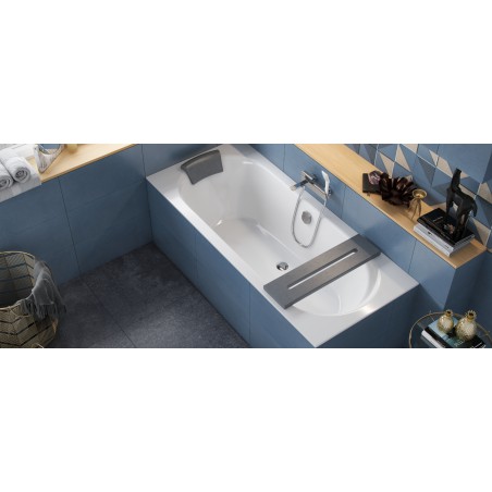 Półka wannowa Level wykonana z poliuretanu, wewnątrz posiada dodatkowe wzmocnienie, które zapewnia wytrzymałość na obciążenie statyczne aż do 150 kg! Produkt ten został zaprojektowany dla osób ceniących sobie przyjemność podczas kąpieli w wannie, a szukających dodatkowych rozwiązań zapewniających jeszcze większy komfort. Specjalnie wyprofilowany otwór na środku zabezpiecza powierzchnię przed stojącą wodą oraz dodatkowo stanowi idealny uchwyt ułatwiający jej przenoszenie.
