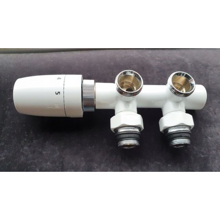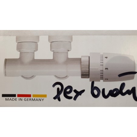 Kompletny zestaw zaworów AG1 (kolor BIAŁY) niemieckiej firmy Schlosser dedykowany do grzejników firmy EXCELLENT.