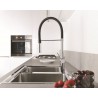 Bateria kuchenna, będąca jednym z profesjonalnych kranów. Cechuje ją atrakcyjny kształt oraz wysoka wydajność techniczna. Wyposażona w dwu-strumieniową główkę prysznicową oraz elastyczny wąż, który gwarantuje wysoki komfort obsługi.