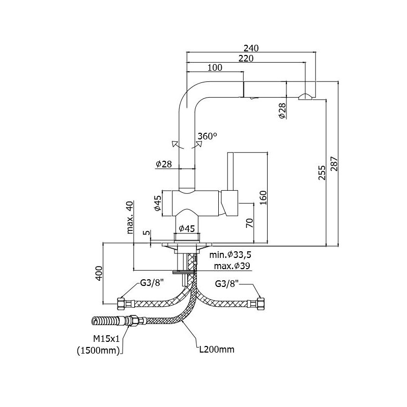 Bateria kuchenna, którą cechuje wyjątkowy design, a jej zaletą jest praktyczność. Korpus dźwigni jest ustawiony poprzecznie, a metalowy prysznic Dualget uzupełnia go z punktu widzenia funkcjonalności.