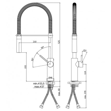 Bateria kuchenna, będąca jednym z profesjonalnych kranów. Cechuje ją atrakcyjny kształt oraz wysoka wydajność techniczna. Wyposażona w dwu-strumieniową główkę prysznicową oraz elastyczny wąż, który gwarantuje wysoki komfort obsługi.