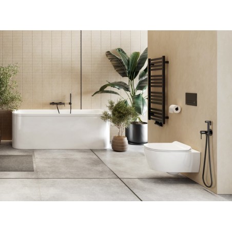 Bateria bidetowa typu bidetta pozwala na pełną kontrolę w trakcie podmywania i pozwala zmienić miskę wc w funkcjonalny bidet. Posiada wąż o długości 120 cm, końcówkę bidetową z włącznikiem. Wbudowana głowica Kerox pozwala na regulację temperatury.