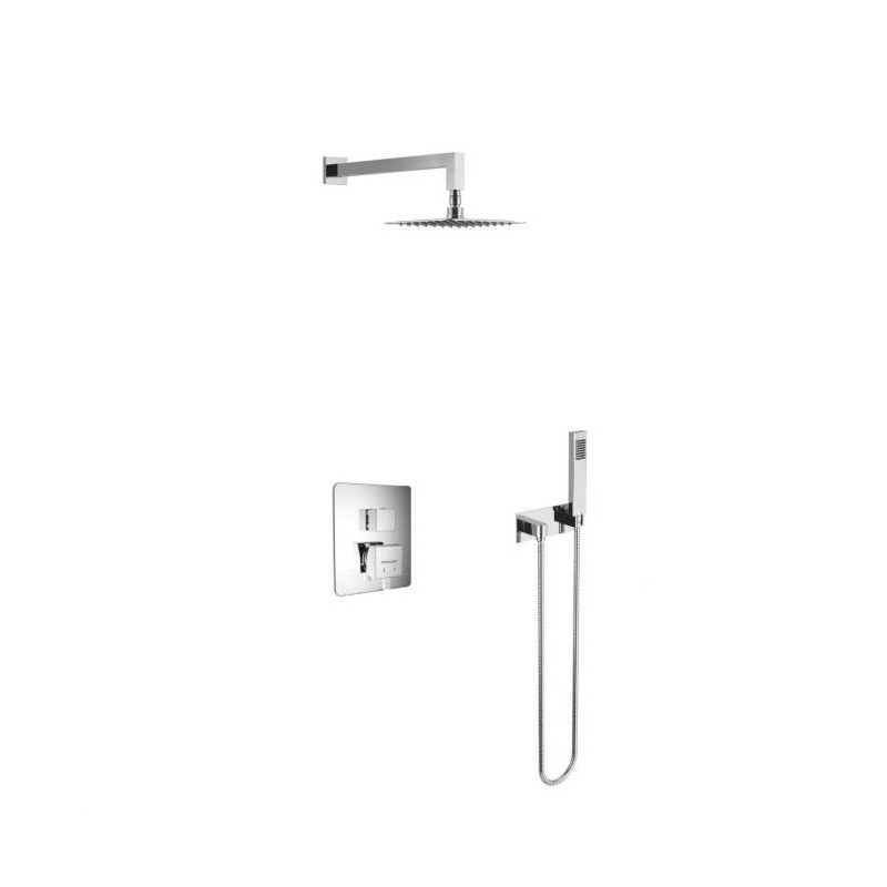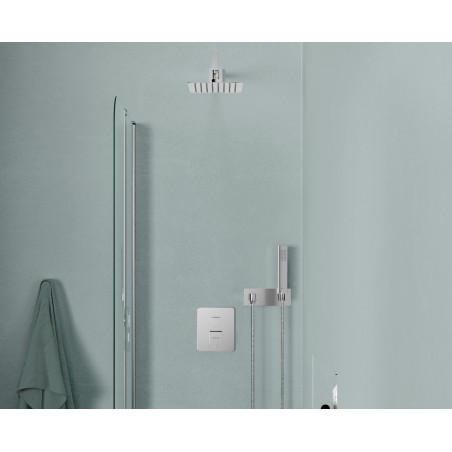 Zestaw podtynkowy Frost Quatro składa się z baterii prysznicowo-wannowej, deszczownicy górnej oraz zestawu punktowego. Bateria prysznicowo-wannowa podtynkowa serii Frost posiada Fix-Box, który ułatwia instalację baterii oraz zapewnia stały dostęp rewizyjny do mechanizmu baterii. Mechaniczny przełącznik funkcji pozwala na wygodny wybór wypływu wody. Kwadratowa okrągła 200×200 z kwadratowym ramieniem może być instalowana na wybranej wysokości, posiada dodatkowy element montażowy oraz ogranicznik przepływu wody. Zestaw punktowy będzie idealnym rozwiązaniem dla użytkowników, którzy nie chcą moczyć włosów podczas krótkiej kąpieli.