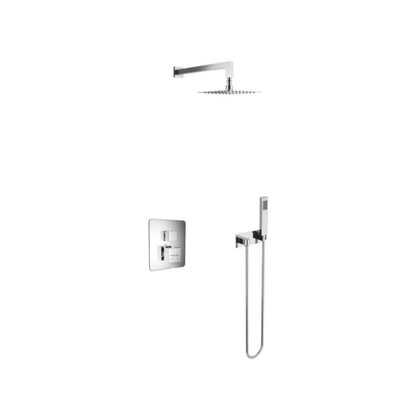 Zestaw podtynkowy Frost Quatro Termo składa się z termostatycznej baterii prysznicowo-wannowej, deszczownicy górnej oraz zestawu punktowego. Bateria prysznicowo-wannowa podtynkowa serii Frost posiada Fix-Box, który ułatwia instalację baterii oraz zapewnia stały dostęp rewizyjny do mechanizmu baterii. Mechaniczny przełącznik funkcji pozwala na wygodny wybór wypływu wody. Kwadratowa okrągła 200×200 z kwadratowym ramieniem może być instalowana na wybranej wysokości, posiada dodatkowy element montażowy oraz ogranicznik przepływu wody. Zestaw punktowy będzie idealnym rozwiązaniem dla użytkowników, którzy nie chcą moczyć włosów podczas krótkiej kąpieli