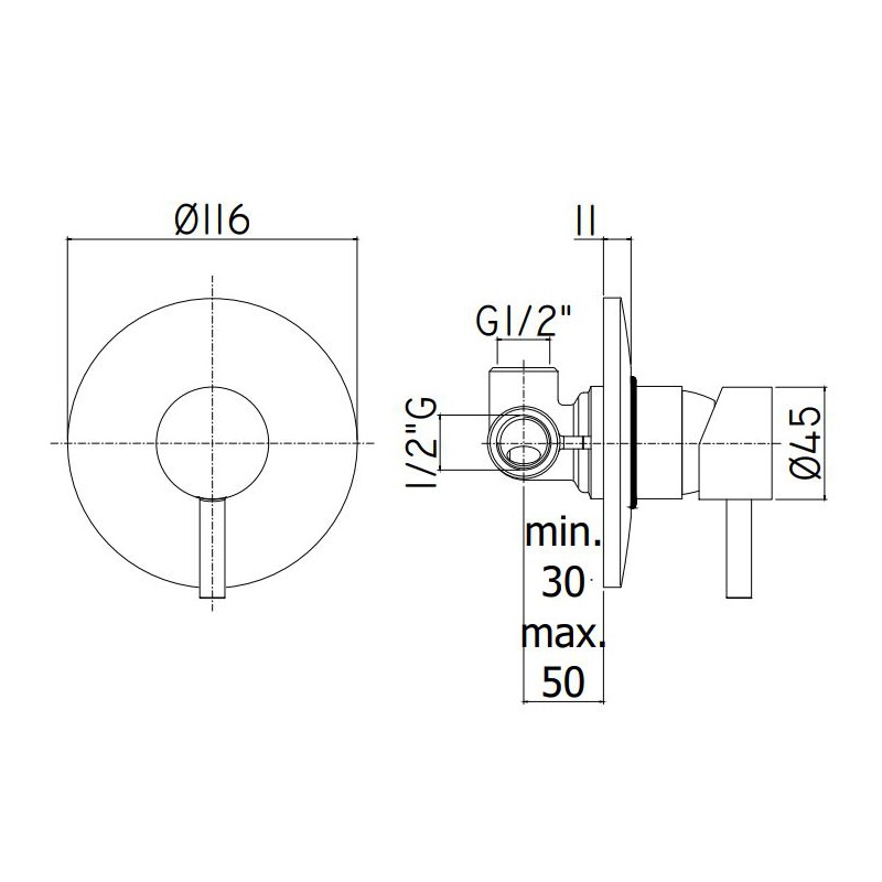 - okrągła metalowa płyta ścienna Ø116mm