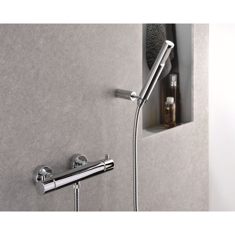 Bateria posiada wbudowany termostat, który gwarantuje stałą temperaturę wypływającej wody - niezależnie od zmian parametrów instalacji. Pożądaną temperaturę ustawia użytkownik za pomocą pokrętła.