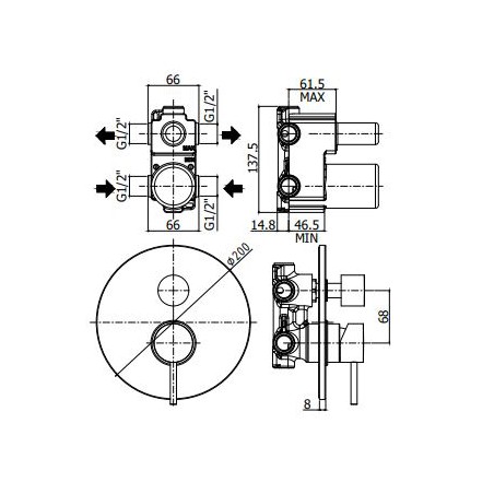 - z przełącznikiem wody, w formie zaworu obrotowego (przełącznik funkcji działa na zasadzie mechanicznej, nie ciśnieniowej, dzięki temu zmiana odbiornika jest łatwiejsza także przy niższym ciśnieniu wody)