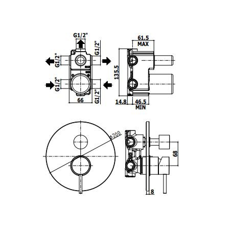 - z przełącznikiem wody, w formie zaworu obrotowego (przełącznik funkcji działa na zasadzie mechanicznej, nie ciśnieniowej, dzięki temu zmiana odbiornika jest łatwiejsza także przy niższym ciśnieniu wody)