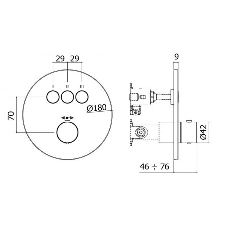 Bateria posiada wbudowany termostat, który gwarantuje stałą temperaturę wypływającej wody - niezależnie od zmian parametrów instalacji. Pożądaną temperaturę ustawia użytkownik za pomocą pokrętła.