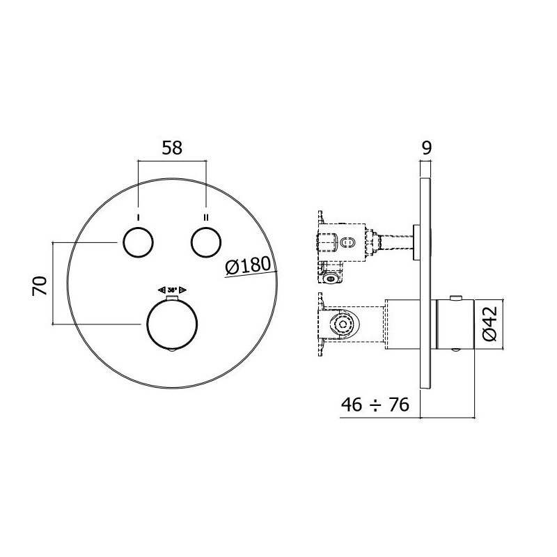 Bateria posiada wbudowany termostat, który gwarantuje stałą temperaturę wypływającej wody - niezależnie od zmian parametrów instalacji. Pożądaną temperaturę ustawia użytkownik za pomocą pokrętła.