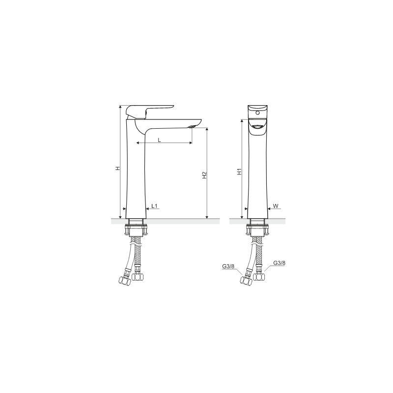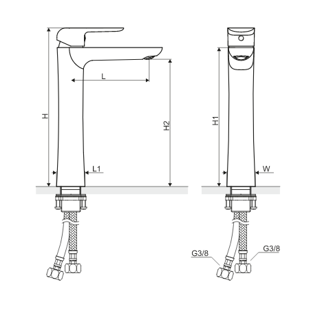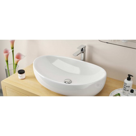 Bateria umywalkowa wysoka posiada wylewkę o zasięgu 131mm i wysokości 211mm. Dzięki temu z powodzeniem może być stosowana do umywalek nablatowych bez otworu na baterię. Jej idealnym uzupełnieniem będą korki umywalkowo-bidetowe w kolorze chrom lub białym (dopasowanym do koloru ceramiki).