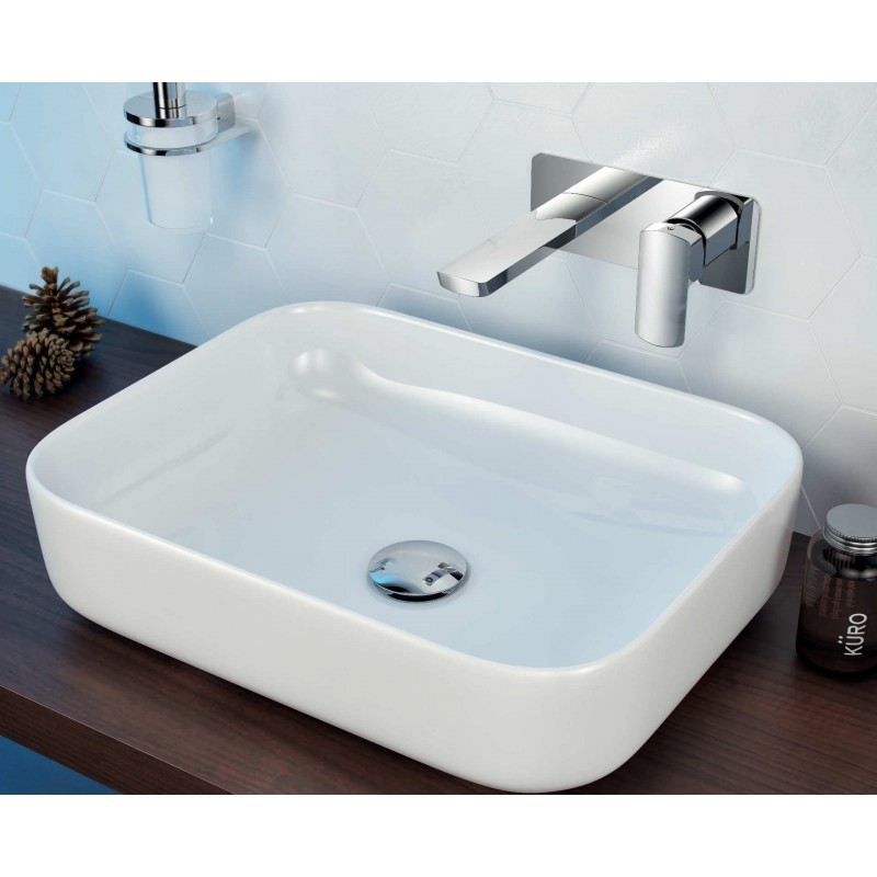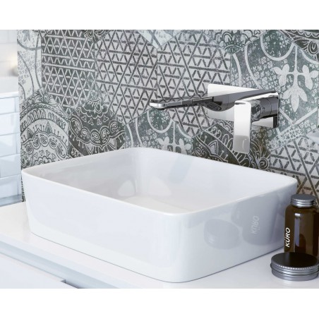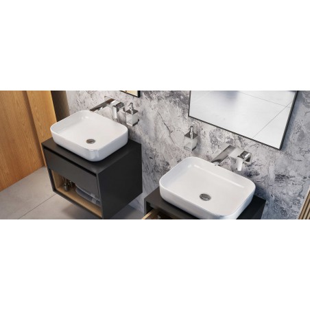 Bateria umywalkowa podtynkowa posiada wylewkę o zasięgu 196mm, może być instalowana na wymaganej wysokości nad umywalką. Dzięki temu z powodzeniem może być stosowana do umywalek nablatowych bez otworu na baterię. Posiada wbudowane: głowicę Kerox oraz perlator Neoperl Slim. Posiada rozdzielne delikatne rozety o wymiarach 60×60. Jej idealnym uzupełnieniem będą korki umywalkowo-bidetowe w kolorze chrom lub białym (dopasowanym do koloru ceramiki).