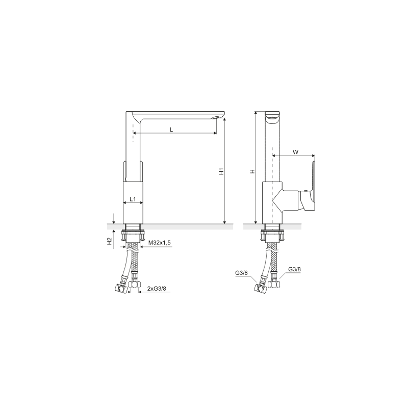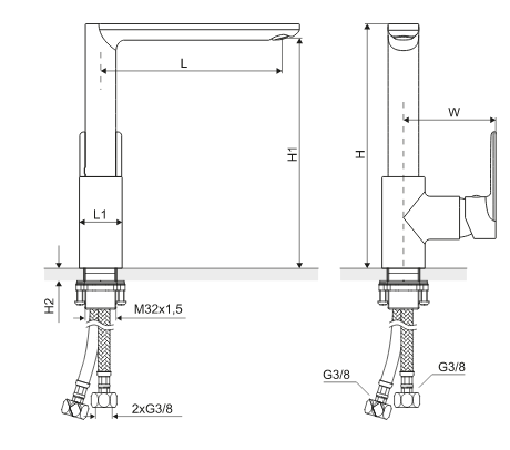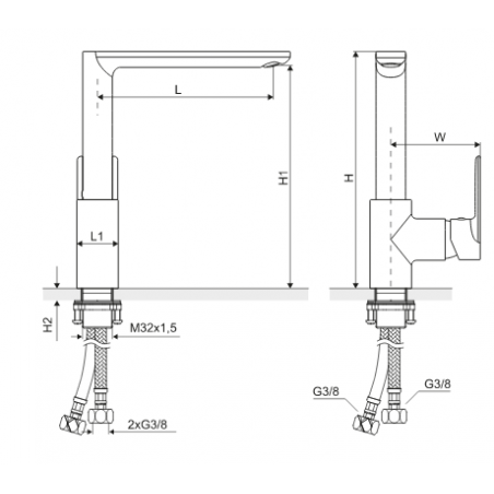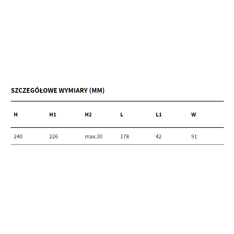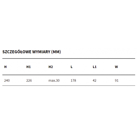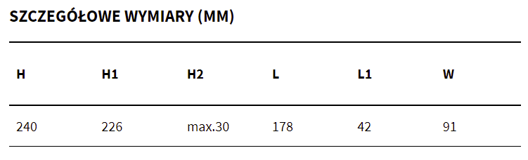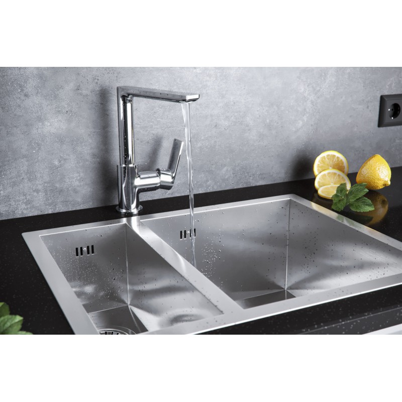 Bateria kuchenna z obrotową wylewką o długości 178mm oraz wysokości 226mm. Z regulacją temperatury i ciśnienia wody za pomocą uchwytu mieszacza umieszczonego z prawej strony korpusu baterii.