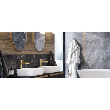 Bateria umywalkowa wysoka posiada wylewkę o zasięgu 189 mm i wysokości 246 mm. Dzięki temu z powodzeniem może być stosowana do umywalek nablatowych bez otworu na baterię. Korpus baterii wykonany jest z jednego odlewu. Posiada wbudowane: głowicę Kerox oraz perlator Neoperl Slim. Jej idealnym uzupełnieniem będą korki umywalkowo-bidetowe.