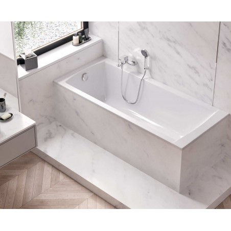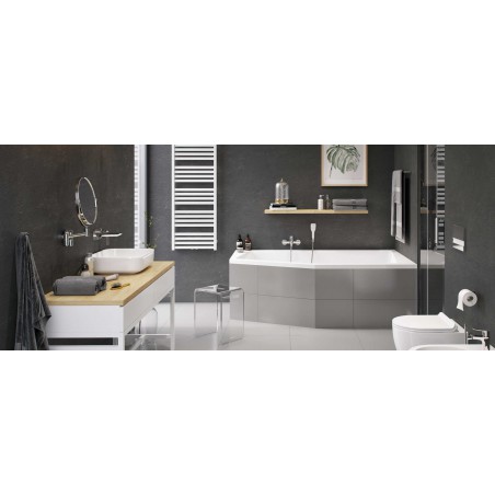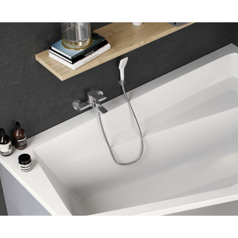 Dzięki temu bateria może być instalowana do każdej prawidłowo wykonanej instalacji pod baterię wannową. Posiada wysięg wylewki 179mm, który pozwala na stosowanie do większości wanien z oferty Excellent (minimalna długość wylewki baterii ściennej podana jest w tabeli charakteryzującej każdą wannę). Mechaniczny przełącznik funkcji w postaci pociąganego pokrętła znajduje się na górze wylewki, pod uchwytem baterii. Jej idealnym uzupełnieniem będą zestawy prysznicowe punktowe.