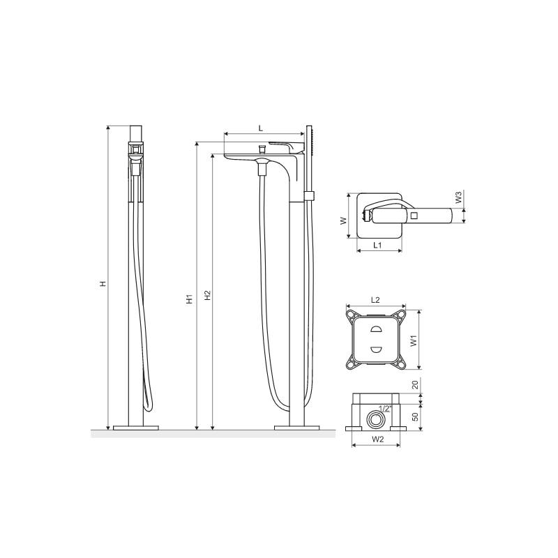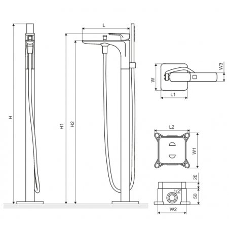 Bateria wannowa wolnostojąca wykonana jest z chromowanego mosiądzu, posiada wylewkę o wysięgu 250 mm i może być stosowana do większości wanien wolnostojących. Wymaga montażu podłogowego przy zastosowaniu Fix-box'a. Posiada wbudowaną głowicę Hydroplast, mechaniczny przełącznik funkcji słuchawka/wylewka.