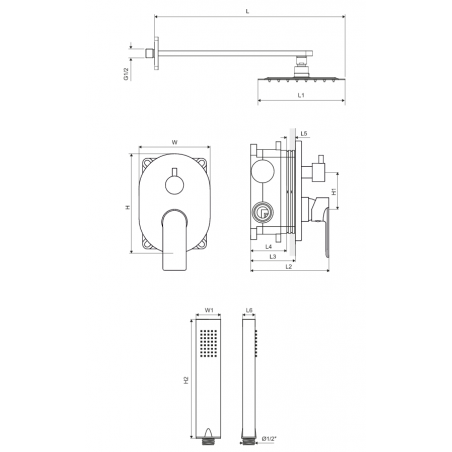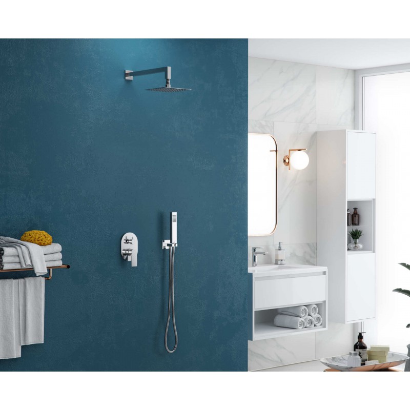 Mechaniczny przełącznik funkcji pozwala na wygodny wybór wypływu wody. Głowica kwadratowa 200×200 z ramieniem kwadratowym może być instalowana na wybranej wysokości, a zestaw punktowy będzie idealnym rozwiązaniem dla użytkowników, którzy nie chcą moczyć włosów podczas krótkiej kąpieli.