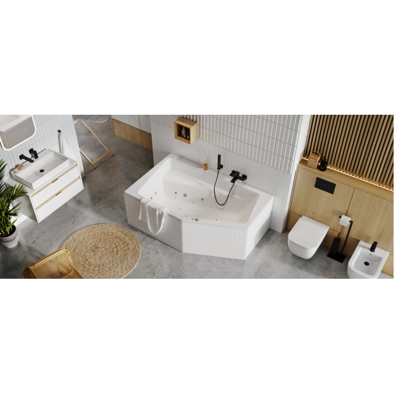 Dzięki temu bateria może być instalowana do każdej prawidłowo wykonanej instalacji pod baterię wannową. Posiada wysięg wylewki 135mm. Jej idealnym uzupełnieniem będą zestawy wannowe w kolorze czarnym. Dostępna także w kolorze chrom.