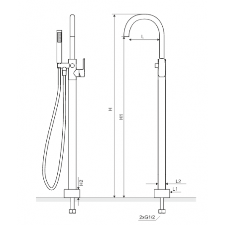 Wymaga montażu podłogowego i odpowiedniego przygotowanie wyprowadzeń wody w posadzce. Posiada wbudowaną głowicę Sedal, mechaniczny przełącznik funkcji słuchawka/wylewka.