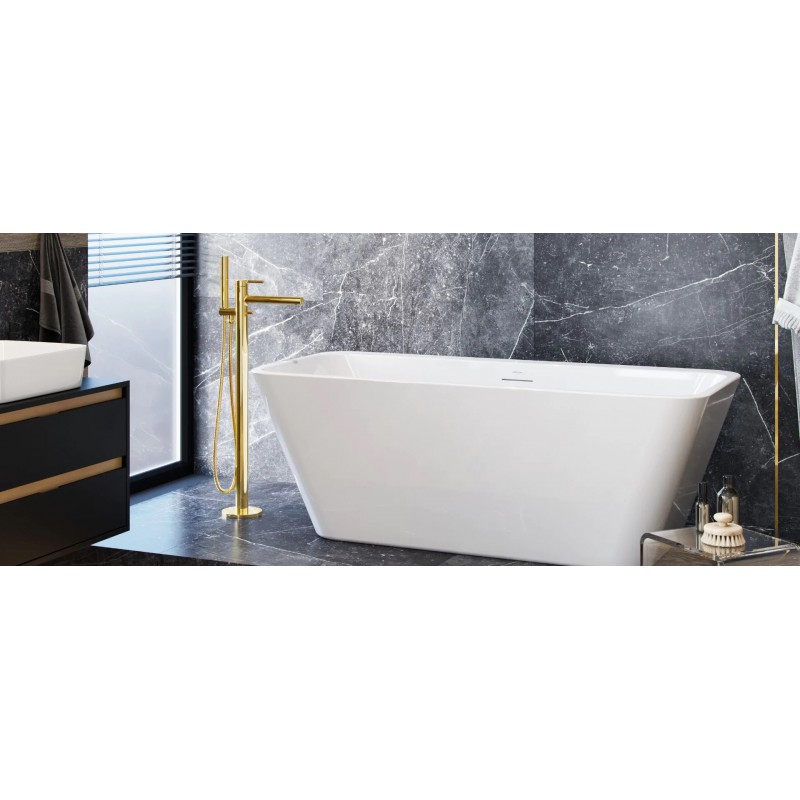 Bateria wannowa wolnostojąca wykonana jest z chromowanego mosiądzu, posiada wylewkę o wysięgu 259 mm i może być stosowana do większości wanien wolnostojących. Wymaga montażu podłogowego przy zastosowaniu Fix-box'a, który dołączamy do baterii w cenie. Posiada wbudowaną głowicę Hydroplast, mechaniczny przełącznik funkcji słuchawka/wylewka. Dostępna w 4 kolorach: biały, czarny, chrom i złoto.