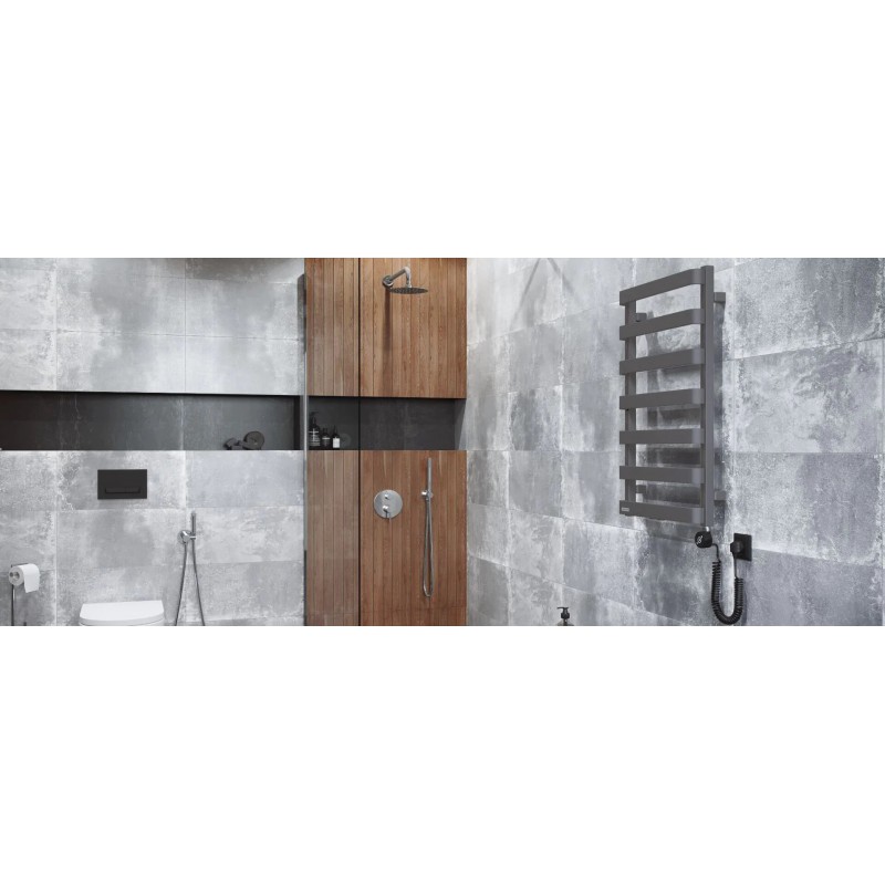 Grzejnik ma szerokie, płaskie profile ułożone w równej odległości od siebie, prostopadle do kolektorów. Dzięki charakterystycznemu wygięciu profili w kształcie litery C, uzyskujemy kształt zapewniający łatwą możliwość zawieszenia tekstyliów do wyschnięcia. Meteor sprawdzi się więc doskonale jako całoroczna suszarka na ręczniki.