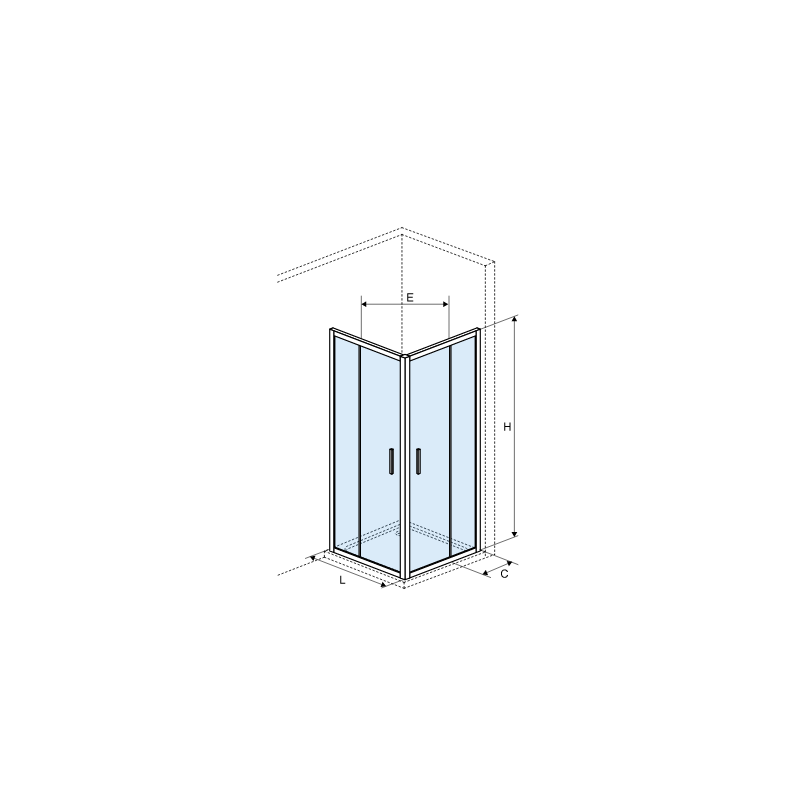 Kabina jest dostępna w dwóch rozmiarach: 800x800 i 900x900mm oraz wysokości 1900mm. Montaż jest uniwersalny: lewy / prawy.