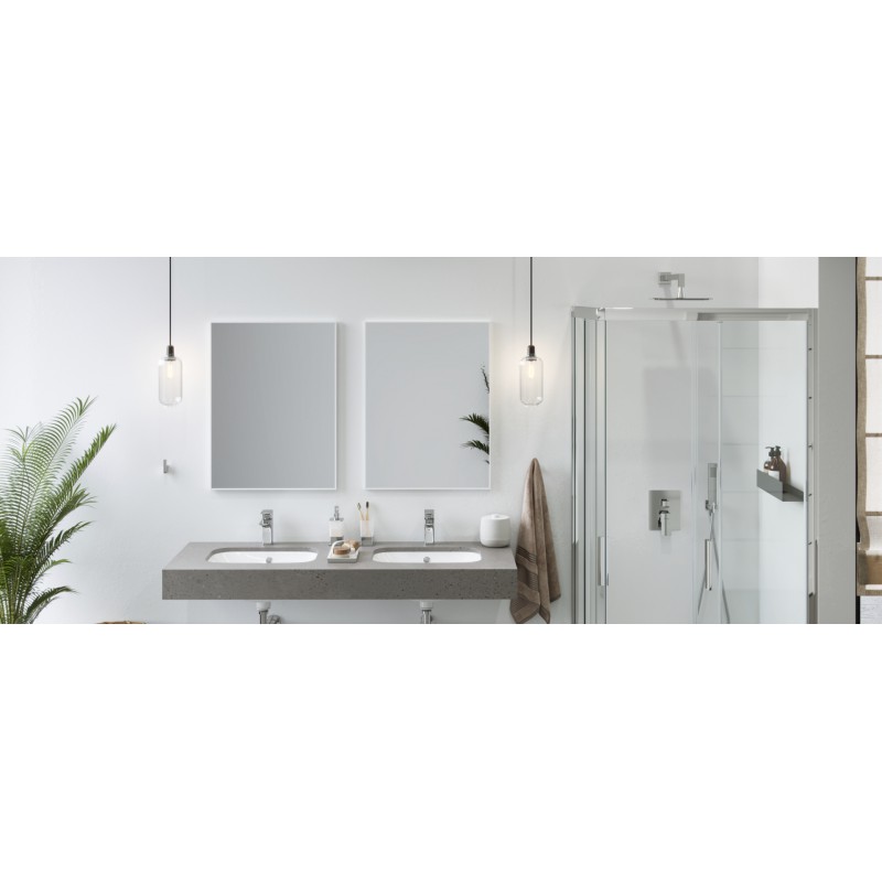 Lustro prostokątne serii Kuadro to proste i funkcjonalne uzupełnienie wnętrza każdej łazienki. Minimalistyczne modele doskonale komponują się z meblami serii Tuto oraz Finli. Kształt i wielkość lustra sprawdzą się zarówno w małych jak i tych większych łazienkach. Lustro Kuadro zamknięte jest w wąskiej anodowanej lub lakierowanej ramie aluminiowej Slim o szerokości przedniego profilu zaledwie 7 mm.
