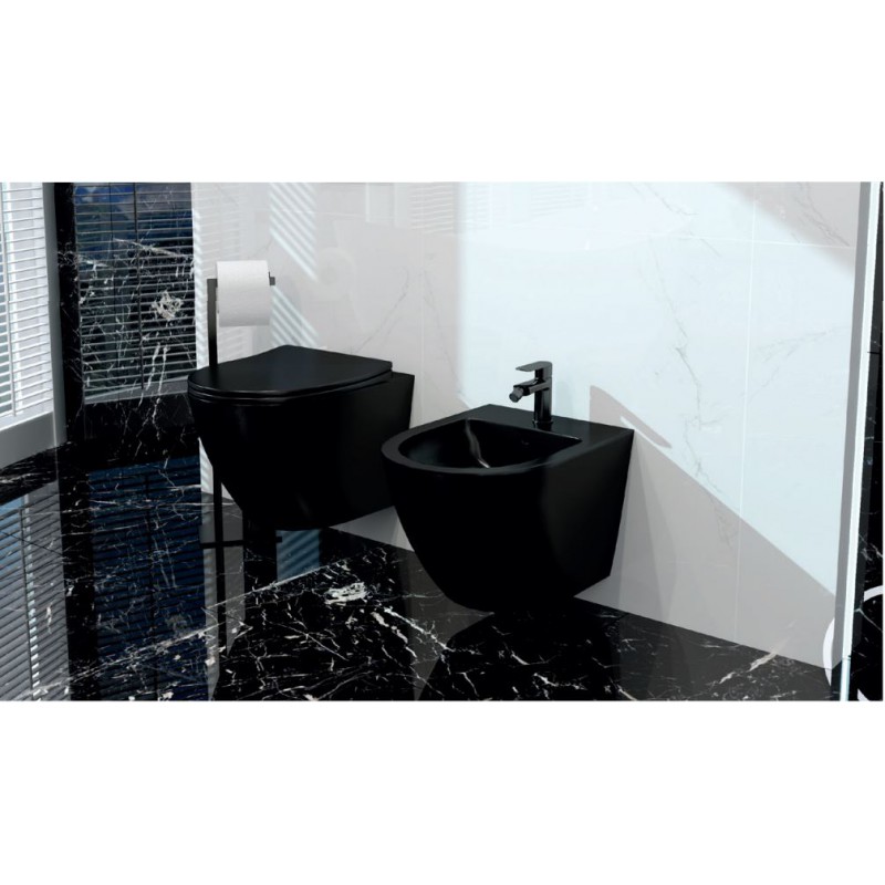 Kompletna muszla WC z deską wolnoopadającą, którą możemy wypiąć jednym ruchem ręki (umożliwi to łatwe czyszczenie trudno dostępnych miejsc pod deską jak i samej deski).