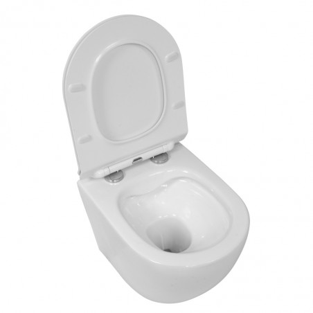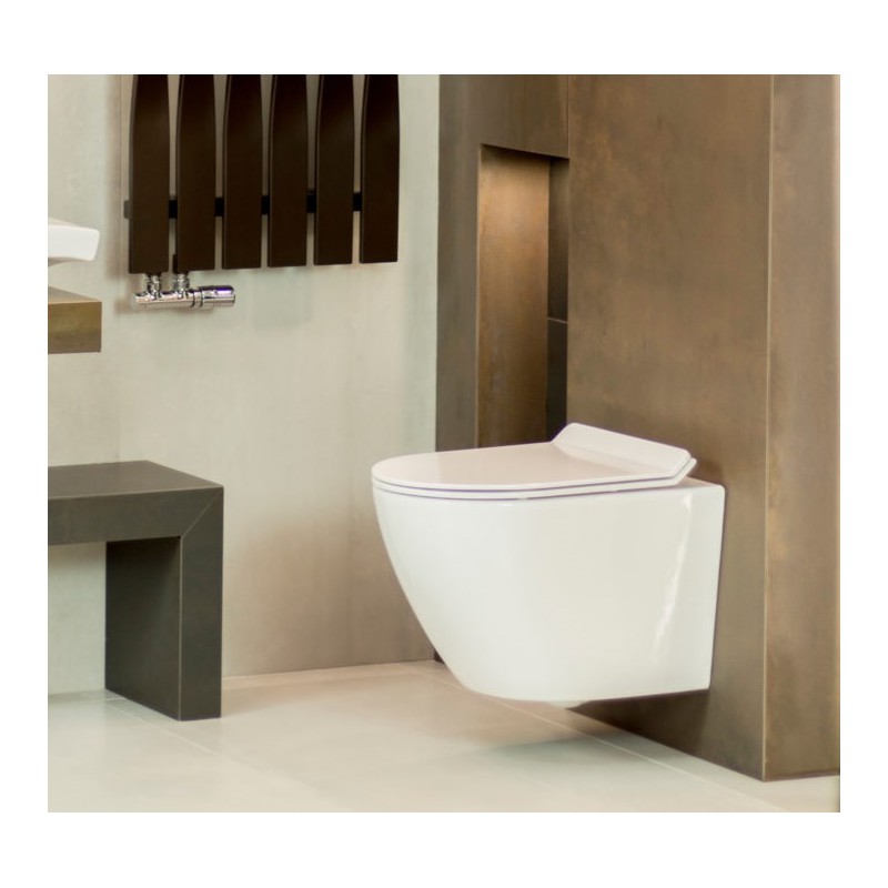 Kompletna muszla WC z deską wolnoopadającą SLIM, którą możemy wypiąć jednym ruchem ręki (umożliwi to łatwe czyszczenie trudno dostępnych miejsc pod deską jak i samej deski).