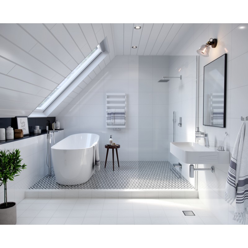 W łazience jest to szczególnie przydatne rozwiązanie w przypadku korzystania z ogrzewania podłogowego lub w razie dłuższego okresu niekorzystania z prysznica. Dodatkową zaletą jest możliwość łatwego zdemontowania i wyczyszczenia syfonu po wyciągnięciu rusztu. Odpływ punktowy Torvi doskonale nadaje się do montażu na konstrukcjach drewnianych, co daje możliwość jego zastosowania np. w domkach letniskowych czy działkowych oraz na drewnianych stropach na piętrze. Do montażu odpływu na konstrukcjach drewnianych zalecane jest specjalnej ramki montażowej: INEX.TO130.R300 – produkt jest dostępny na zamówienie.