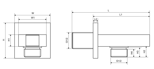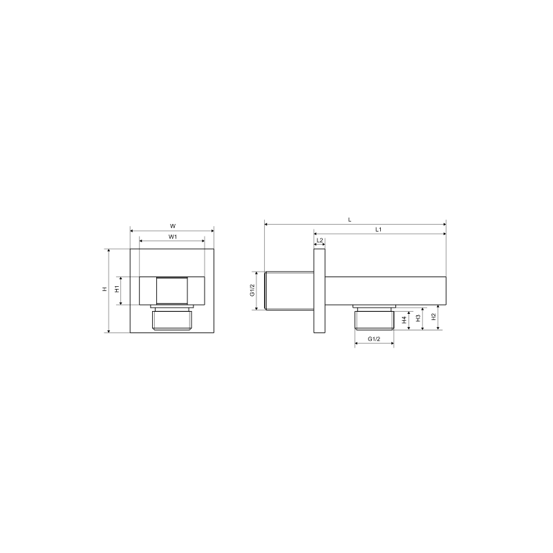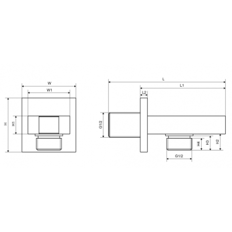 Przyłącze kątowe z mocowaniem słuchawki wykonane jest z mosiądzu w kolorze czarny mat. Posiada kwadratową rozetę, która skrywa podtynkowe podłączenie, które można wykorzystać jako podłączenie do baterii podtynkowej.