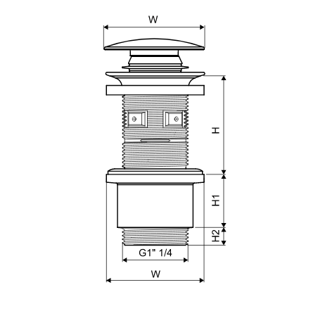 Uniwersalny Korek umywalkowo-bidetowy Click-Clack z funkcją czyszczenia od góry – spełni oczekiwania nawet najbardziej wymagających użytkowników. Korki umywalkowo-bidetowe zostały zaprojektowane tak, aby sprawdzały się zarówno podczas montażu jak i długoletniego użytkowania. Korek Click-Clack złoty zostały wykonane z wysokiej jakości mosiądzu.