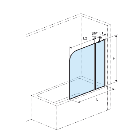 Dwuczęściowa konstrukcja parawanu składa się z części stałej - ścianki o długości 300mm oraz części ruchomej o długości 700mm. Dzięki unoszonemu zawiasowi, którego zakres ruchu to 180 stopni – z łatwością złożymy część ruchomą parawanu. Montaż parawanu jest uniwersalny - lewy lub prawy. W ramach Serii 900 dostępne są również parawany jednoczęściowe z uchwytem lub bez uchwytu.