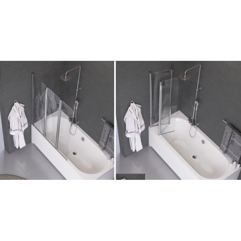 Parawany wannowe to kompromis dla tych, którzy mimo małej przestrzeni w łazience chcą posiadać jednocześnie wannę i kabinę w swojej łazience. Parawan trzyczęściowy Fliper został wykonany z przezroczystego szkła hartowanego o grubości 4mm, jest trwały i wizualnie nie pomniejsza wnętrza. Dobrze zabezpiecza podłogę przed zachlapaniem, co ułatwia utrzymanie porządku.