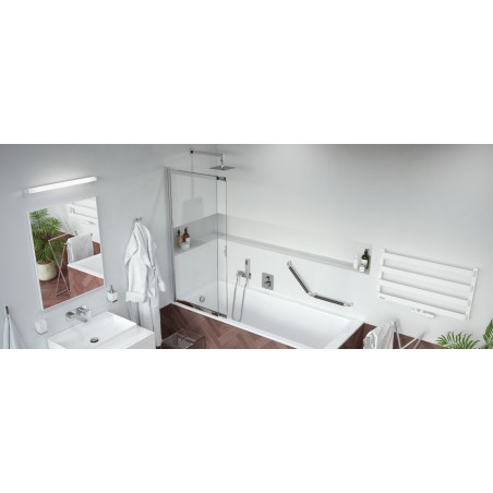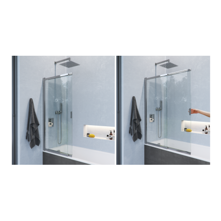 Liner to rozsuwany parawan prysznicowy, którego design pozwala na wkomponowanie go do każdej łazienki, zapewniając ponadczasowy styl i najwyższą jakość wykonania. Z funkcjonalnego punktu widzenia, to kompromis dla tych, którzy mimo małej przestrzeni w łazience chcą posiadać jednocześnie wannę i kabinę. Przesuwna konstrukcja parawanu daje możliwość dopasowania jego długości do indywidualnych potrzeb - całkowity zakres długości mieści się między 630 a 1100mm.