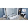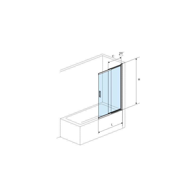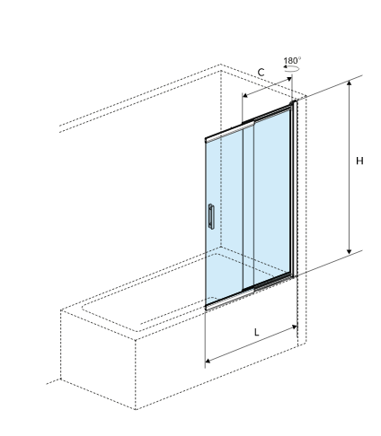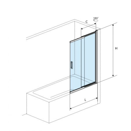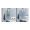 Do zestawu dołączono ściągaczkę ułatwiającą czyszczenie trudno dostępnych fragmentów między dwoma szybami. Parawan został wykonany z przezroczystego szkła hartowanego o grubości 6mm. Na szkło naniesiono dwustronną nanopowłokę Clean Control, która ułatwia czyszczenie. Wyposażono go w unoszony zawias z zakresem ruchu 180°, który sprawia , że składanie i rozkładanie parawanu jest jeszcze bardziej wygodne. Dzięki temu, parawan można swobodnie złożyć do ściany. Montaż parawanu jest uniwersalny - lewy lub prawy.