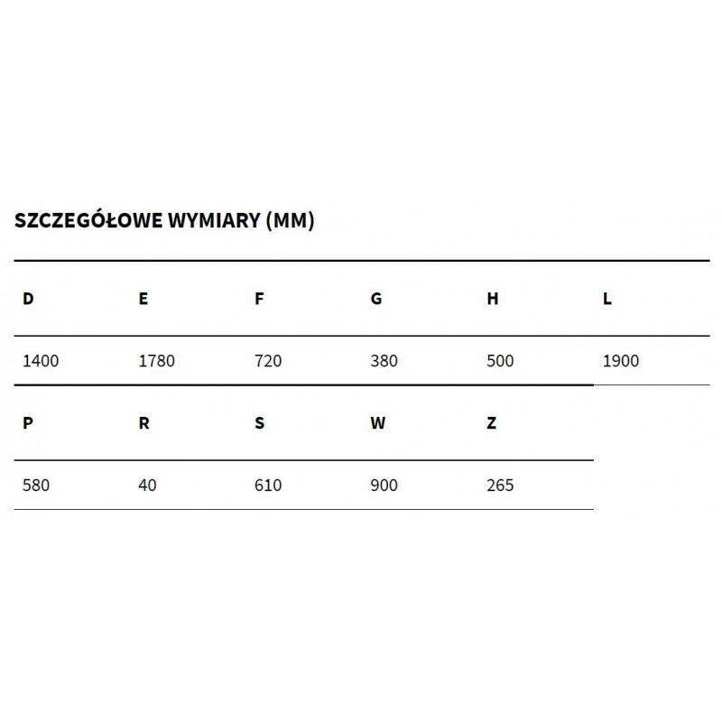 Rozmiar (mm): 1900 × 580