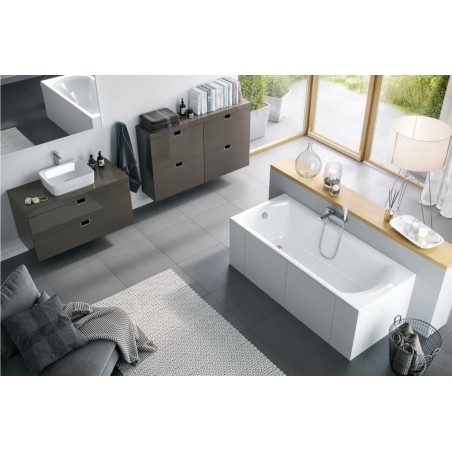Dzięki niskiemu rantowi, zaledwie 18mm, wanna zabudowana płytkami wygląda efektownie i delikatnie. Uzyskany minimalizm to także podniesiona użyteczność - na takim rancie można z powodzeniem instalować baterie nawannowe bez dodatkowego wzmocnienia.