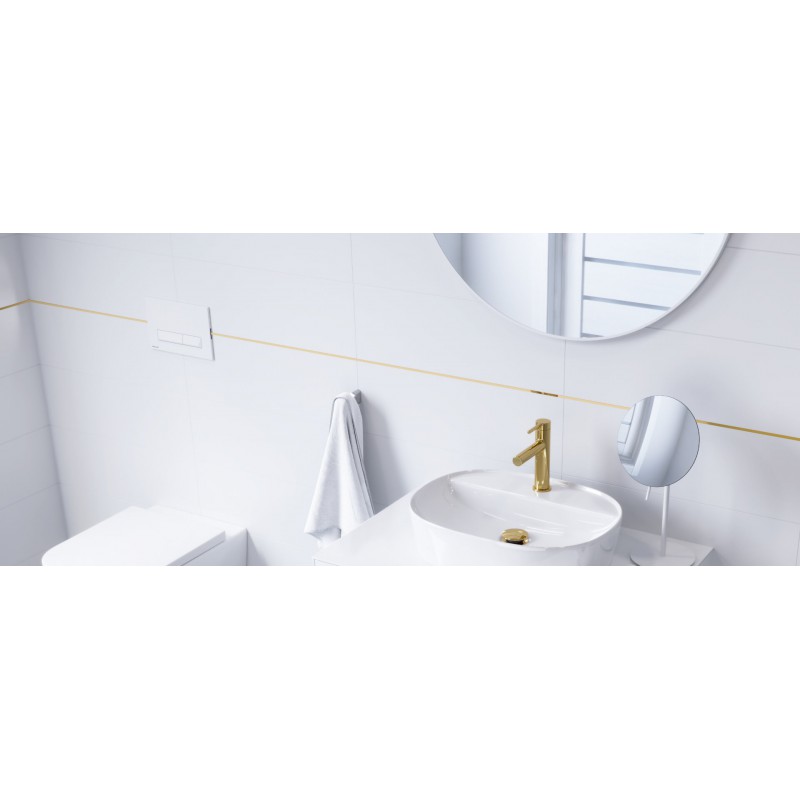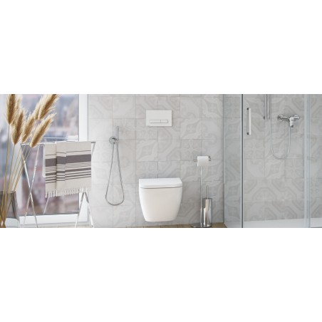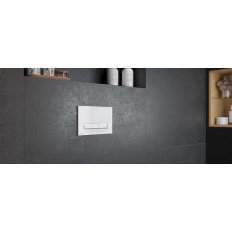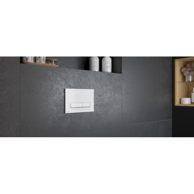 Platto to przycisk spłukujący do WC z mechanicznym systemem spłukiwania. Został zaprojektowany tak, aby można go było dopasować do kolekcji o kształtach ostrzejszych, kwadratowych, które bardzo często są projektowane w nowoczesnych łazienkach. Dzięki odpowiedniemu wyprofilowaniu przycisków, użytkowanie jest wyjątkowo komfortowe. Platto wykonany jest z tworzywa sztucznego, posiada dwa przyciski odpowiadające za oszczędny i pełny zakres spłukiwania, uruchamiane przez naciśnięcie od przodu.
