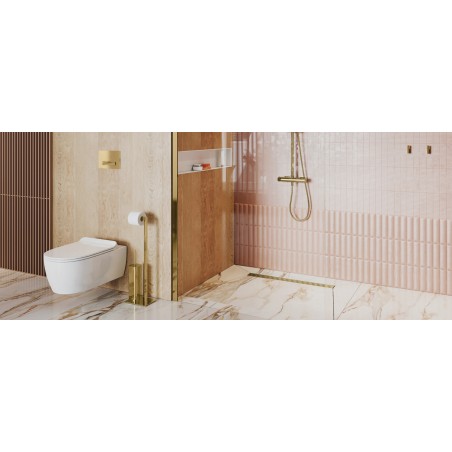 Aurro to przycisk spłukujący do WC z mechanicznym systemem spłukiwania. Ma klasyczny, elegancki kształt, a jego miękkie, zaokrąglone kształty świetnie komponują się z pozostałymi produktami zastosowanymi w łazience. Dzięki odpowiedniemu wyprofilowaniu przycisków, użytkowanie jest wyjątkowo komfortowe.