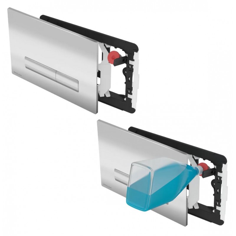 Wyróżniającą funkcją przycisku jest wbudowany mechanizm z podajnikiem podłączany do wężyka w stelażu Shiro Premium. Pozwala on na wygodne napełnianie zbiorniczka systemu Pure Power płynem odświeżającym, który zapobiega osadzaniu się kamienia w misce WC. System ten przy każdym spłukaniu uwalnia niewielką ilość płynu do toalety. Środek odświeżający znajduje się zawsze w obiegu zamkniętym i nie jest stale połączony z wodą w zbiorniku, w przeciwieństwie do tradycyjnych tabletek czyszczących, które mają kontakt z wodą. Zmniejsza to ryzyko uszkodzenia części spłuczki (w szczególności uszczelek) przez składniki środka.