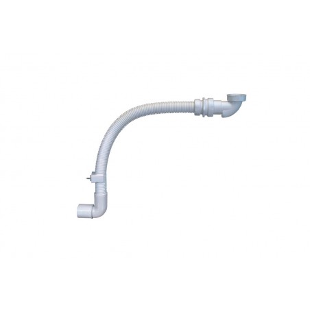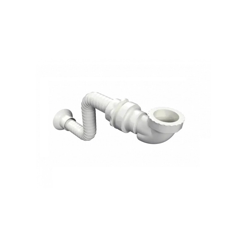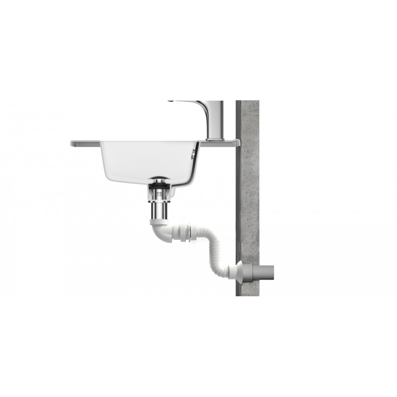 Nowoczesne rozwiązanie odprowadzenia wody z umywalki w łazience lub bidetu podwieszanego. Jest to syfon niski, który zajmuje niecałe 6cm i skutecznie odprowadza wodę z prędkością aż 0,6 litra na sekundę. Tutaj, jako kompletny zestaw z rurą giętą, umożliwiającą elastyczne podłączenie do rury odpływowej.