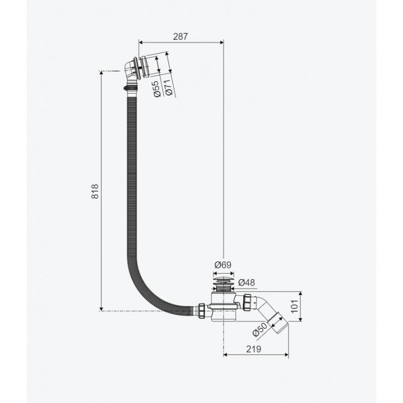 Elegancki przelew MOLI z korkiem Click-Clack czyszczony od góry. Rozmiar rury przelewowej: 400 oraz 1000 mm.