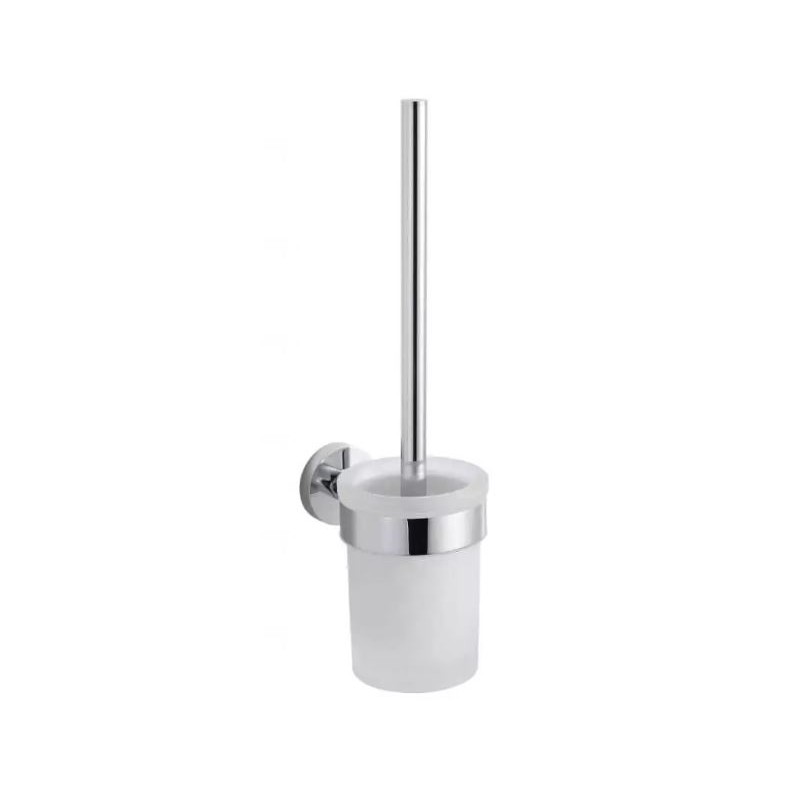 pojemnik na szczotkę ze szkła matowego stabilnie osadzony w uchwycie za pomocą uszczelki z elastycznego tworzywa,