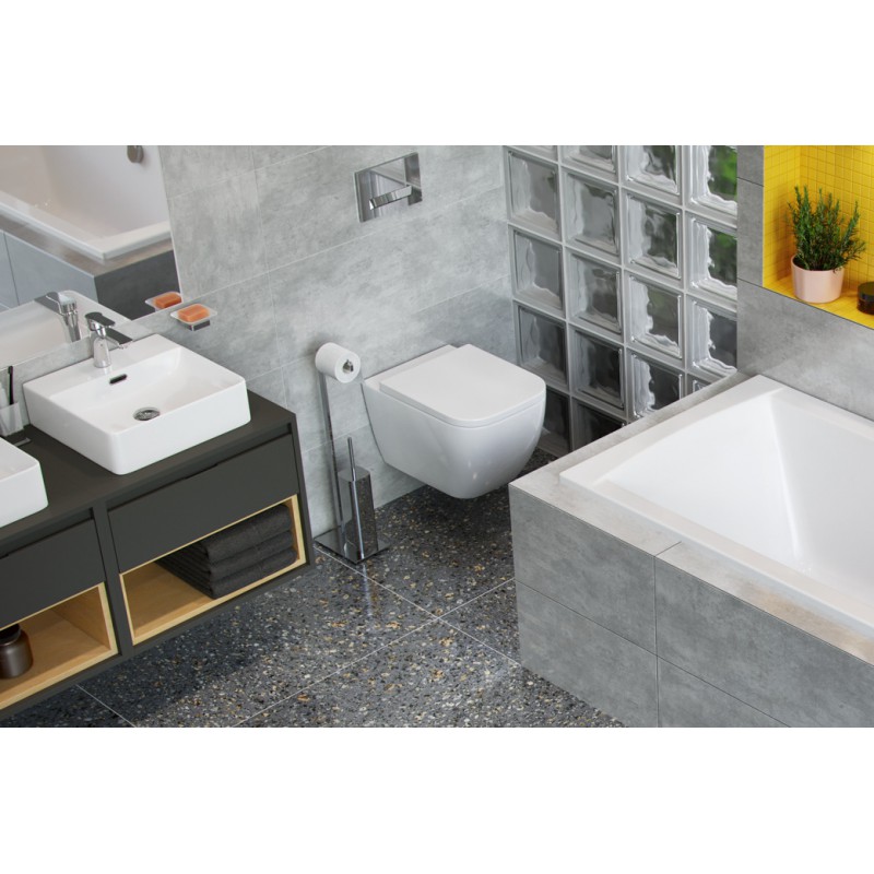 Seria Riko to bogata oferta dodatków łazienkowych o klasycznych, stonowanych kształtach będących idealnym wyborem do nowoczesnej łazienki. Stojak na papier toaletowy ze szczotką składa się z metalowego pojemnika, szczotki w kolorze czarnym z uchwytem oraz uchwytu na papier toaletowy.