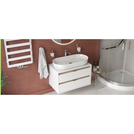 Umywalki serii Jima to zaprojektowany w przemyślany sposób produkt, stanowiący przyjemne dla oka połączenie funkcjonalności i efektownego wzornictwa. Zwężające się ranty oprócz pięknego kształtu umożliwiają wykorzystanie w pełni przestrzeni użytkowej w wewnętrznej części misy, a idealnie gładkie, jednolicie białe szkliwo zachwyca lekkością wykonania.