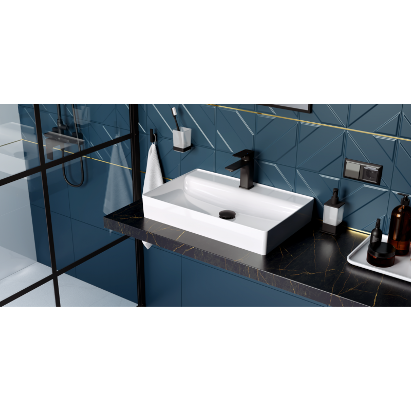 Do umywalki Rima 2.0 polecamy korki umywalkowo - bidetowe w kolorze: białym, czarnym, złotym lub chrom oraz baterie umywalkowe niskie.