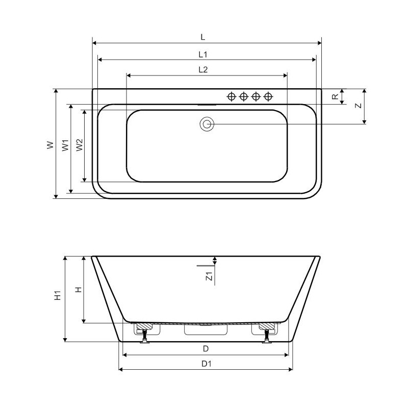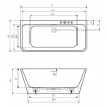 Wanna ze zintegrowaną obudową dodatkowo wzmocniona powierzchnia odkładcza, która umożliwia zamontowanie baterii 4-otworowej nawannowej. Posiada uniwersalny przelew szczelinowy, syfon z korkiem Click-Clack w kolorze chrom oraz stelaż z regulowanymi nóżkami.
